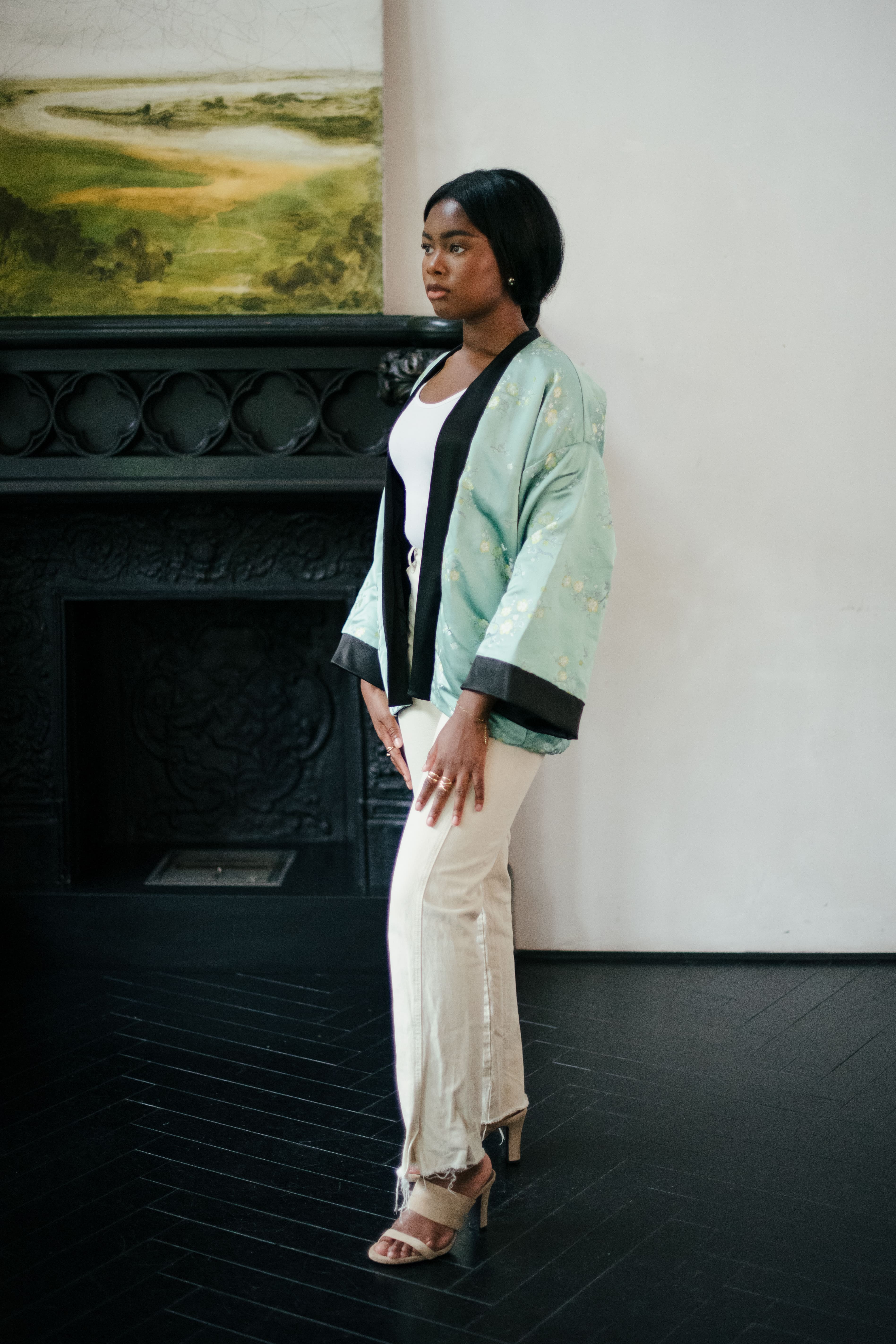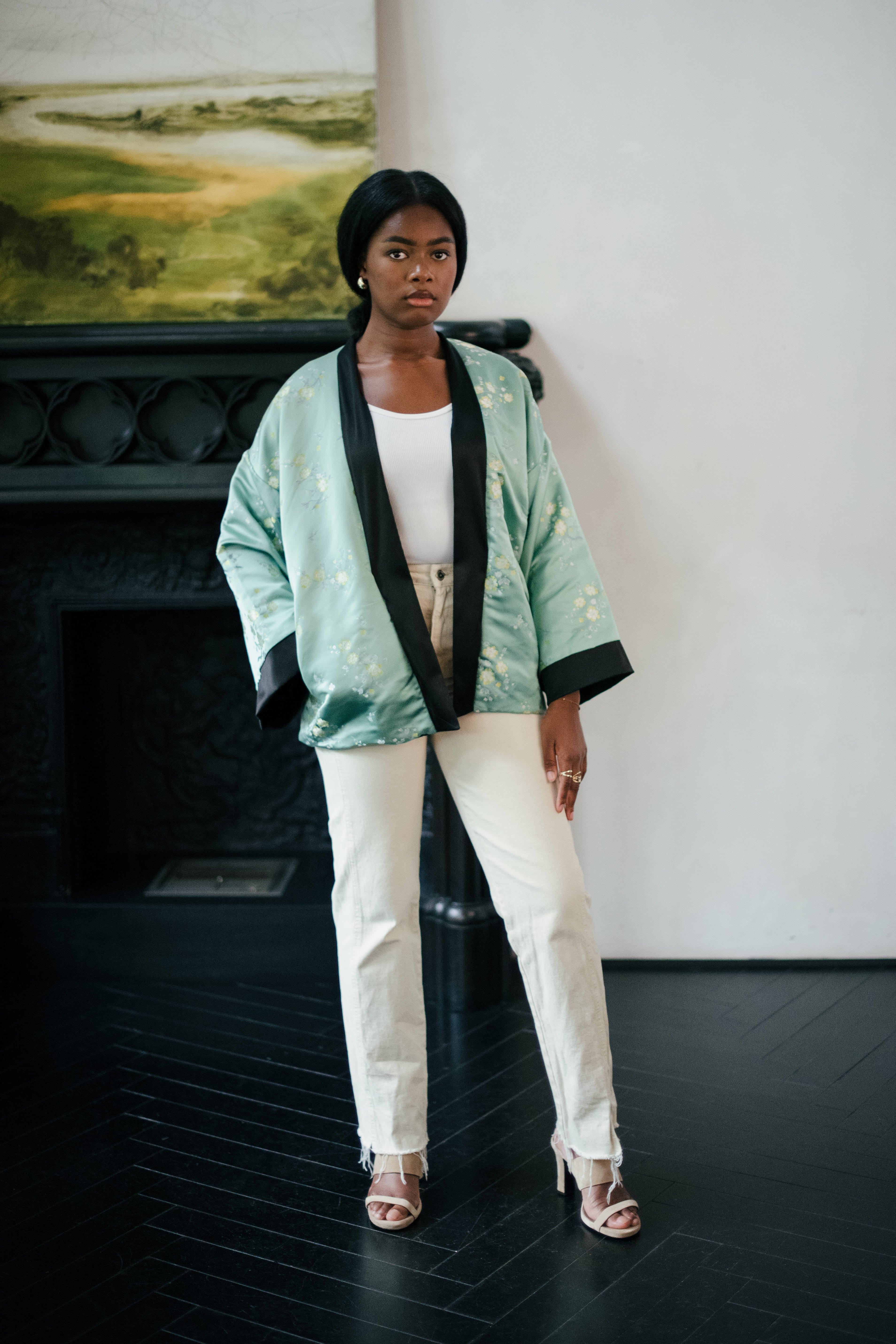 Le kimono Kiara, au style bombers moderne, est la pièce signature de notre collection automne. Ce kimono en soie avec broderie, satin et doublure intérieur sublimera votre look. Se porte parfaitement avec un jean, une jupe, une robe ou un Palazzo. Tissu upcyclé, fin de rouleau LVMH.